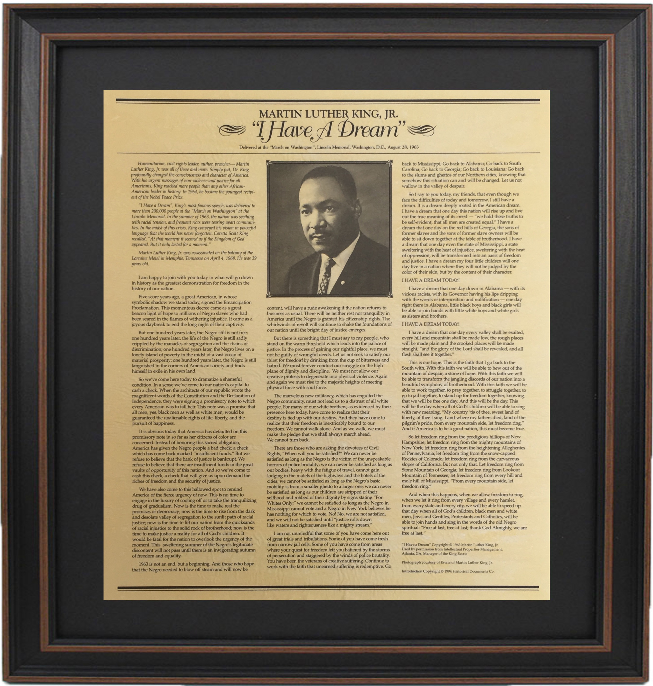 Framed Martin Luther King Jr I Have A Dream Speech With Mat Made In Usa Free Shipping On All Orders At Patriotgearcompany Com